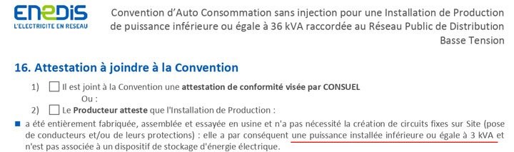 Cette réglementation est officialisée dans la Convention d’Auto Consommation que vous devrez signer avec Enedis :